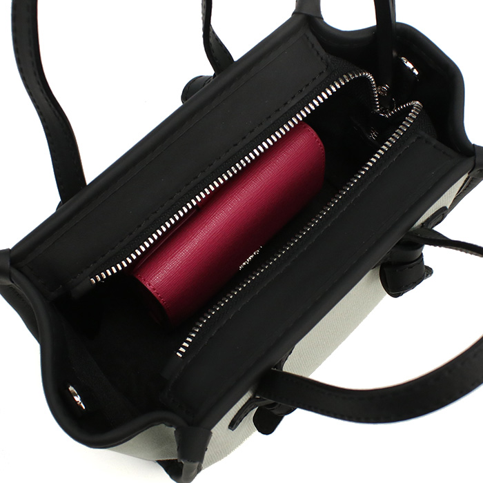 | 仕様 | ファスナー開閉 内側: オープンポケット×1 ファスナーポケット×1 肩掛け不可 ショルダー取り外し可 A4サイズ収納不可 生産国:イタリア |