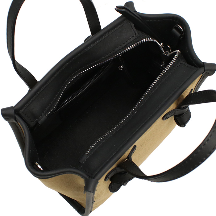 | 仕様 | ファスナー開閉 内側: オープンポケット×1 ファスナーポケット×1 肩掛け不可 ショルダー取り外し可 A4サイズ収納不可 生産国:イタリア |