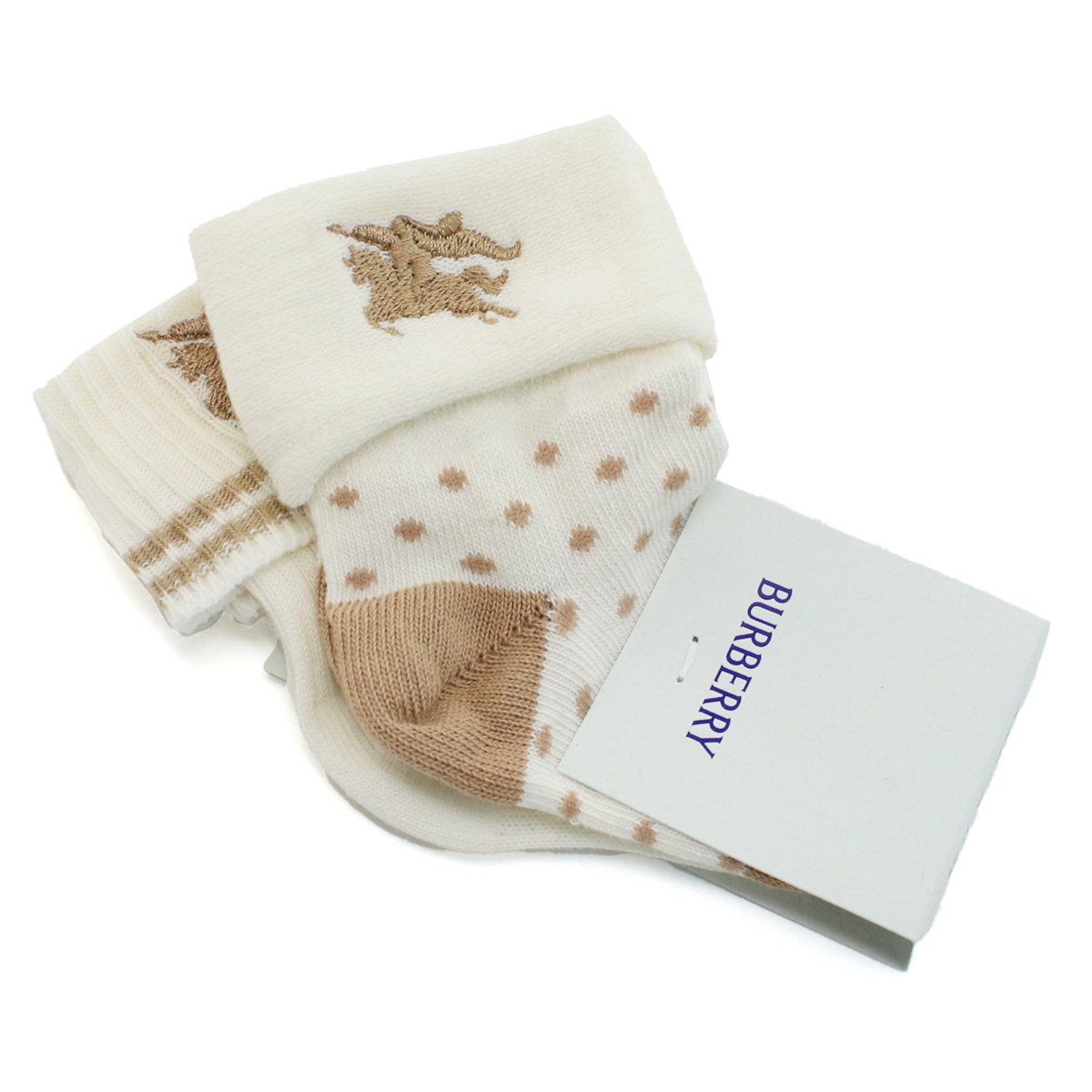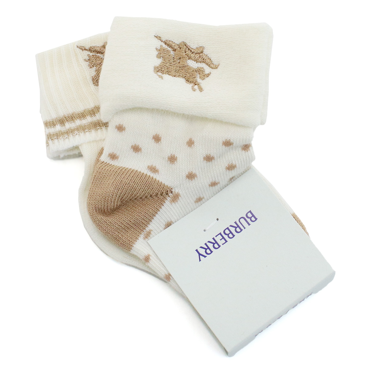 バーバリー BURBERRY ベビー ソックス ブランド 8079697 A7041IVORY IP PAT ベージュ系 kb-01